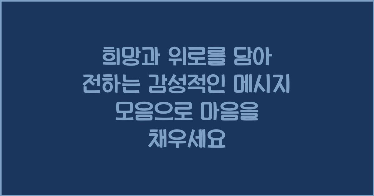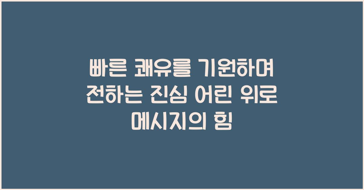 위로 메시지의 중요성우리 삶에서 힘든 순간은 종종 찾아오곤 합니다. 그럴 때 누군가의 위로가 얼마나 큰 힘이 되는지를 우리는 잘 압니다. 특히, 건강이 좋지 못할 때는 주변의 따뜻한 마음을 더욱 갈망하게 되죠. 이렇게 전하는 빠른 쾌유를 기원하며 전하는 진심 어린 위로 메시지는 치유의 긍정적인 에너지를 불러일으킬 수 있습니다. 누군가 아프거나 힘든 상황에 처했을 때, 그들을 생각하며 보내는 간단한 메시지가 큰 위로가 될 수 있습니다.빠른 쾌유를 기원하며 전하는 진심 어린 위로 메시지 더 알아보기위로의 말 한 마디가 사람의 마음에 얼마나 깊은 감동을 줄 수 있는지, 여러분도 경험해 보셨을 텐데요. 요즘은 기술의 발전 덕에 나의 감정을 편리하게 전달할 수 있는 방법이 많습니다. 문자나 SNS로 쉽게 메시지를..